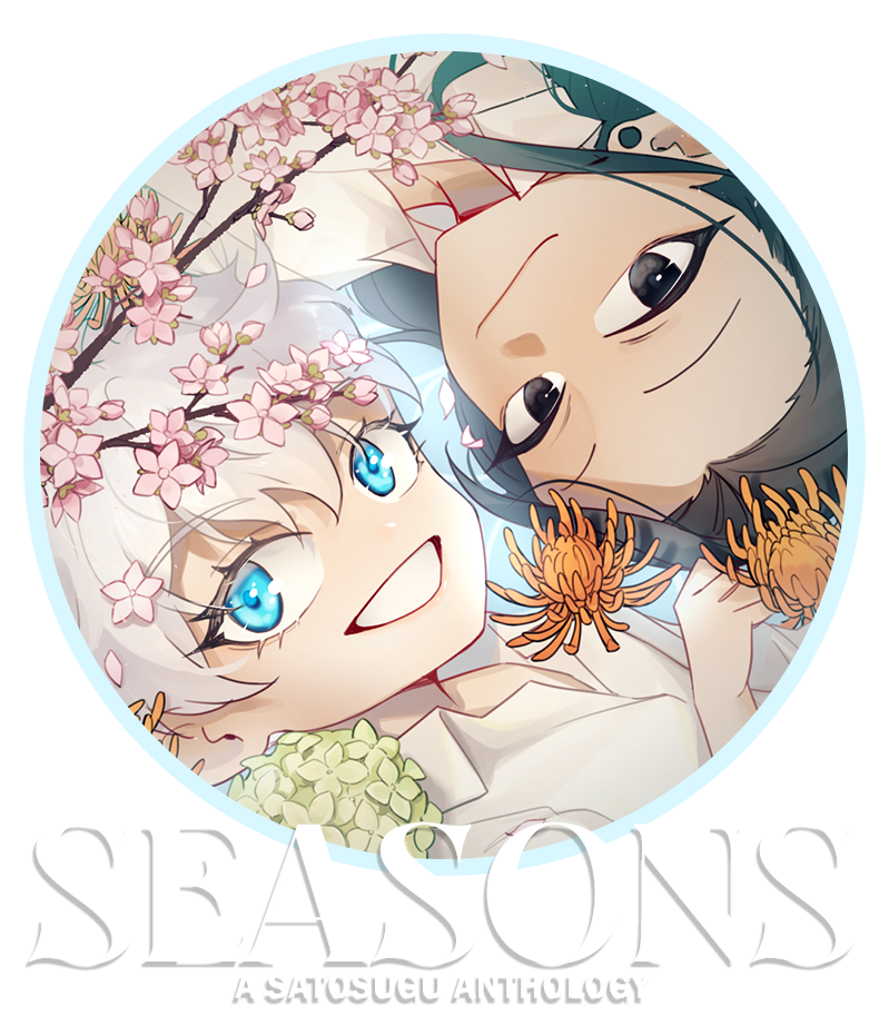 This zine aims to explore the romantic relationship between Satoru Gojo and Suguru Geto from Akutami Gege’s Jujutsu Kaisen manga; therefore, all content shall be centred around these two characters. We’re aiming for the canon setting of the Jujutsu Kaisen manga.The anthology shall be divided into different sections based on the different seasons and shall explore Satosugu chronologically through the Jujutsu Kaisen series. We envision the theme of seasons to take on multiple dimensions besides mood/aesthetic and timeline.Spring: This shall be the first section of our anthology and shall focus on their meeting and early years.Summer: This section shall be set in the Hidden Inventory timeline and follow all the incidents up to Suguru’s deflection.Autumn: This section shall focus on the aftermaths of Suguru’s defection and transition into the timeline of Jujutsu Kaisen 0.Winter: This shall focus on adult Satosugu and everything that happens post JJK0.This project aims to capture montages of Satosugu through their journey together and apart from each other. We hope to feature everything from soft domestic settings and cheerful tones to bittersweet dilemmas and heartbreak to acceptance and remembrance and everything in between. Honestly, feel free to go wild and unleash your Satosugu muse!Previous zine experience and follower count are not factors for acceptance. All applicants will be judged based on the samples and portfolios submitted in the application form.